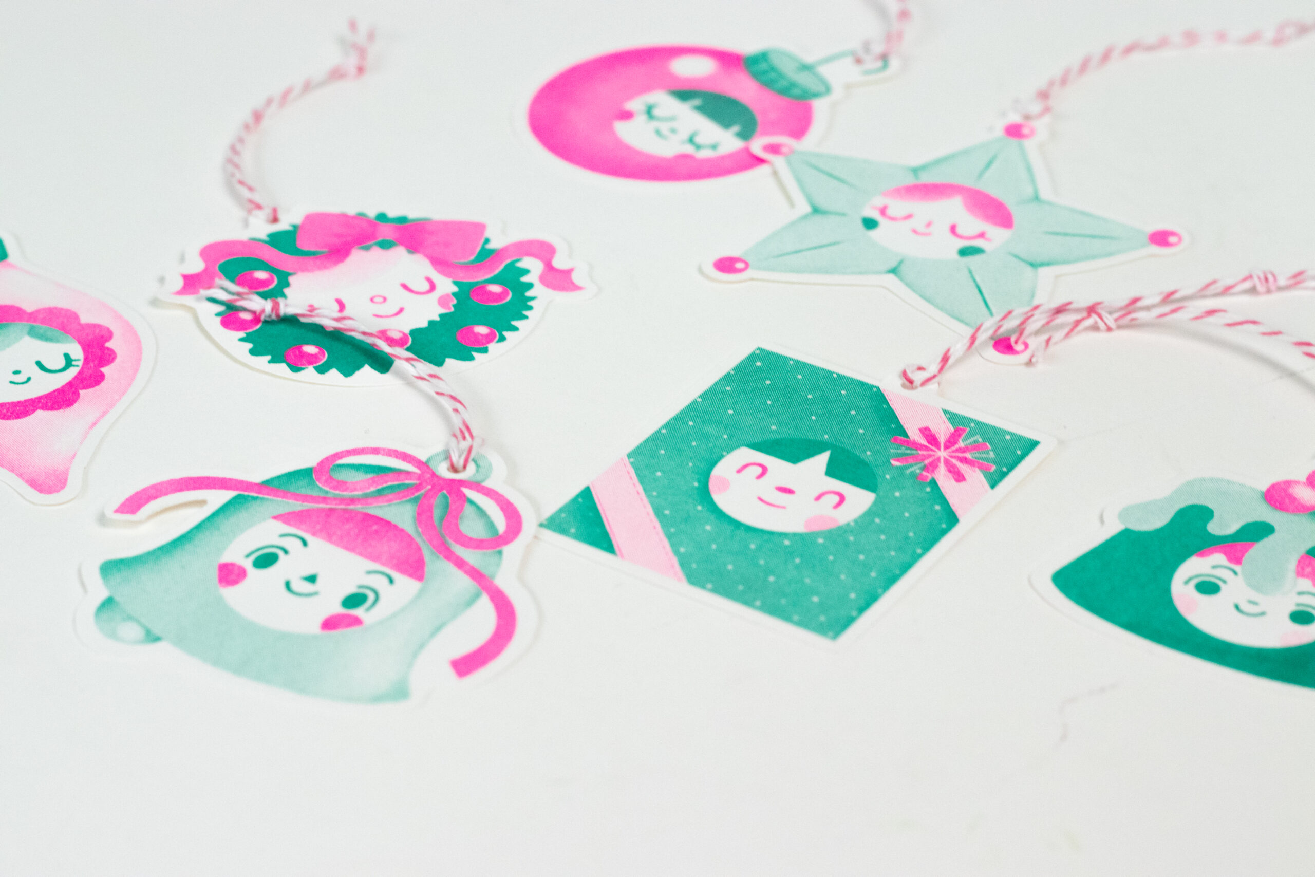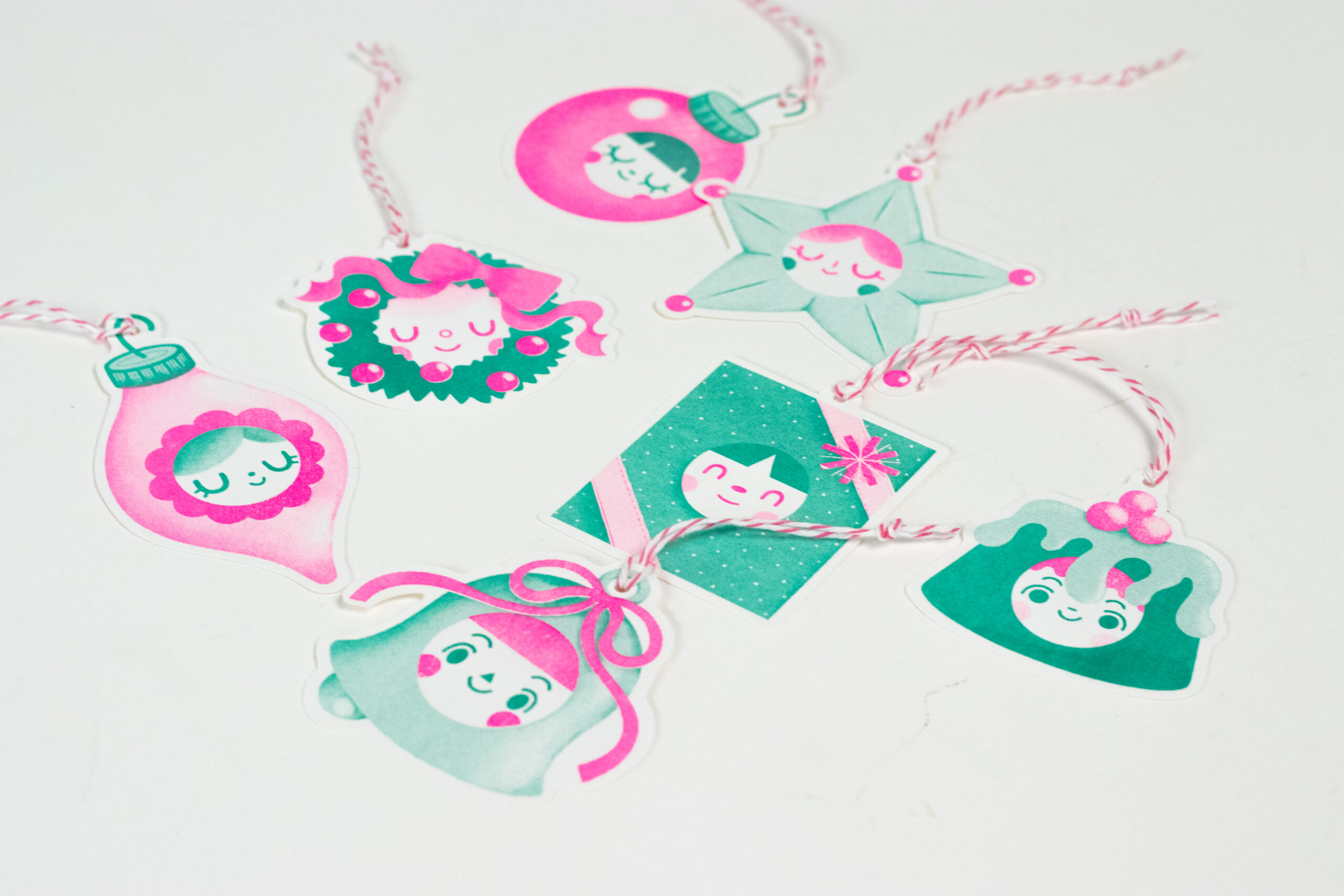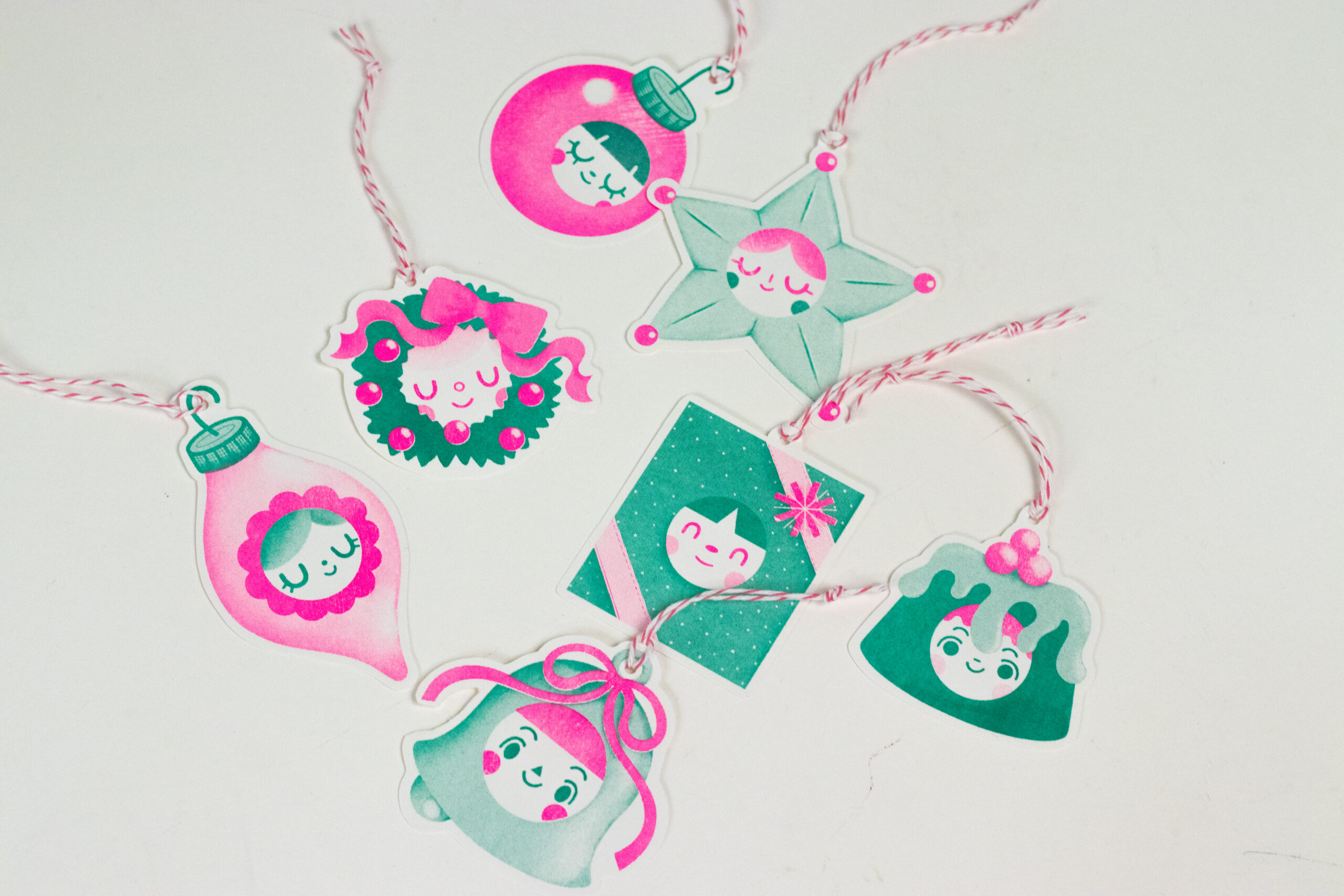 The perfect tags for all of your holiday gifts! Comes with 7 festive friends. Riso Prints!