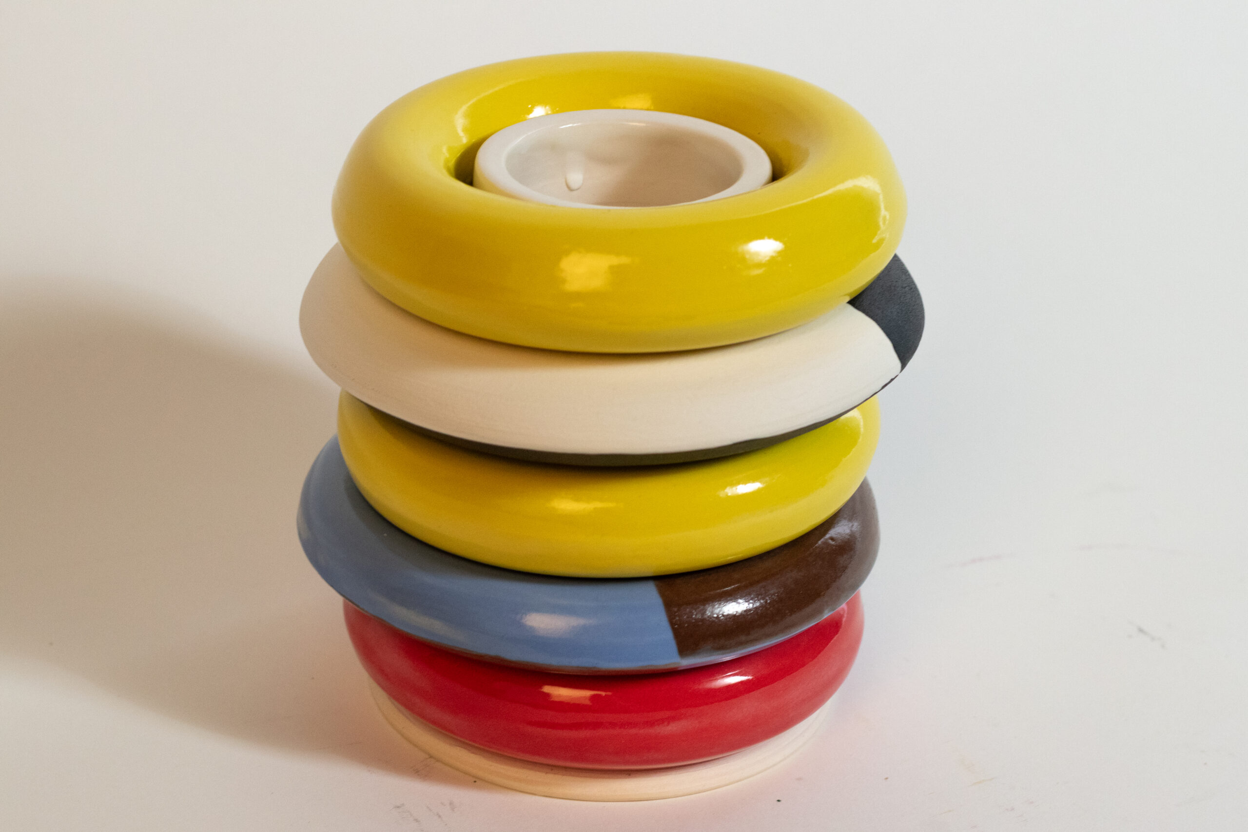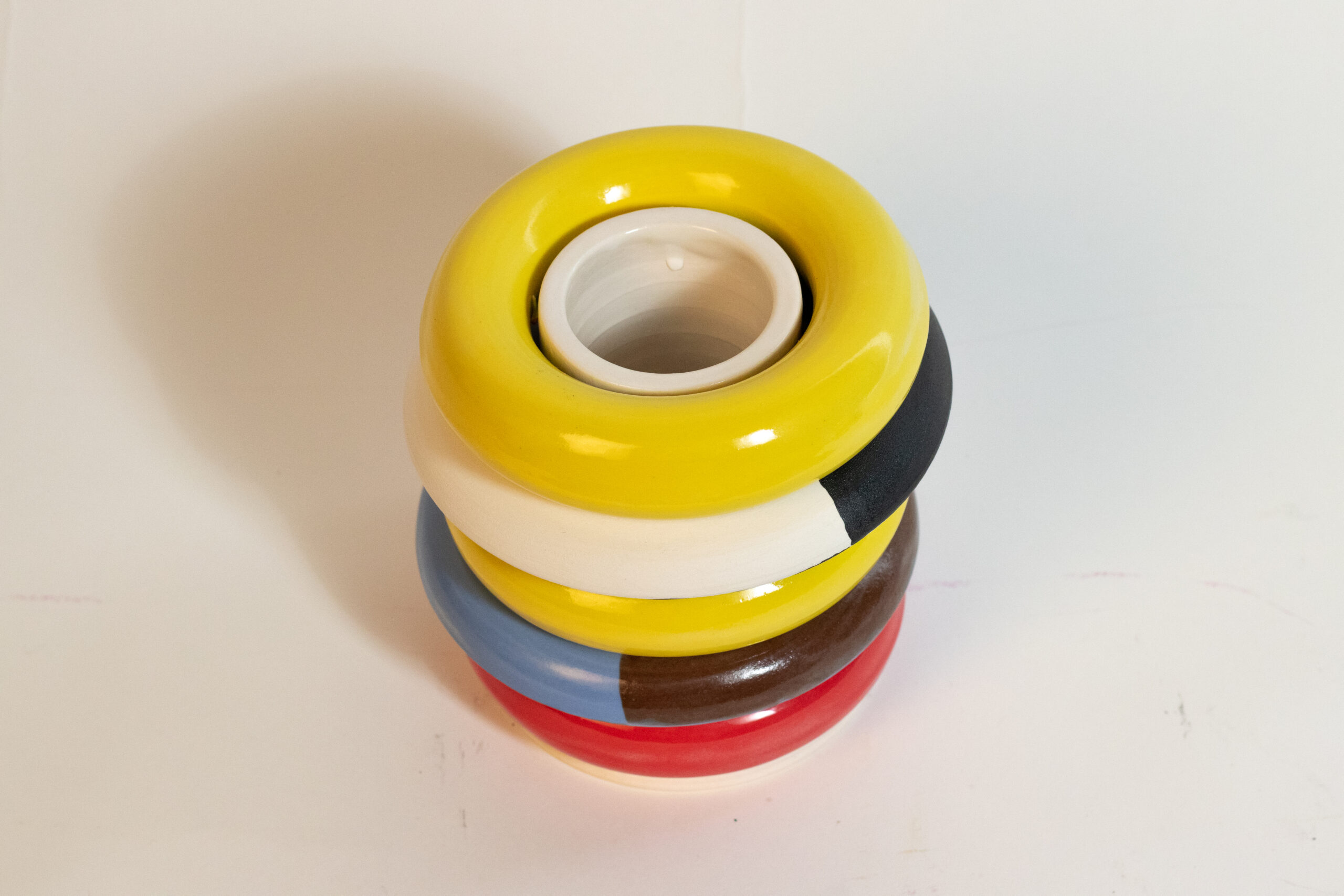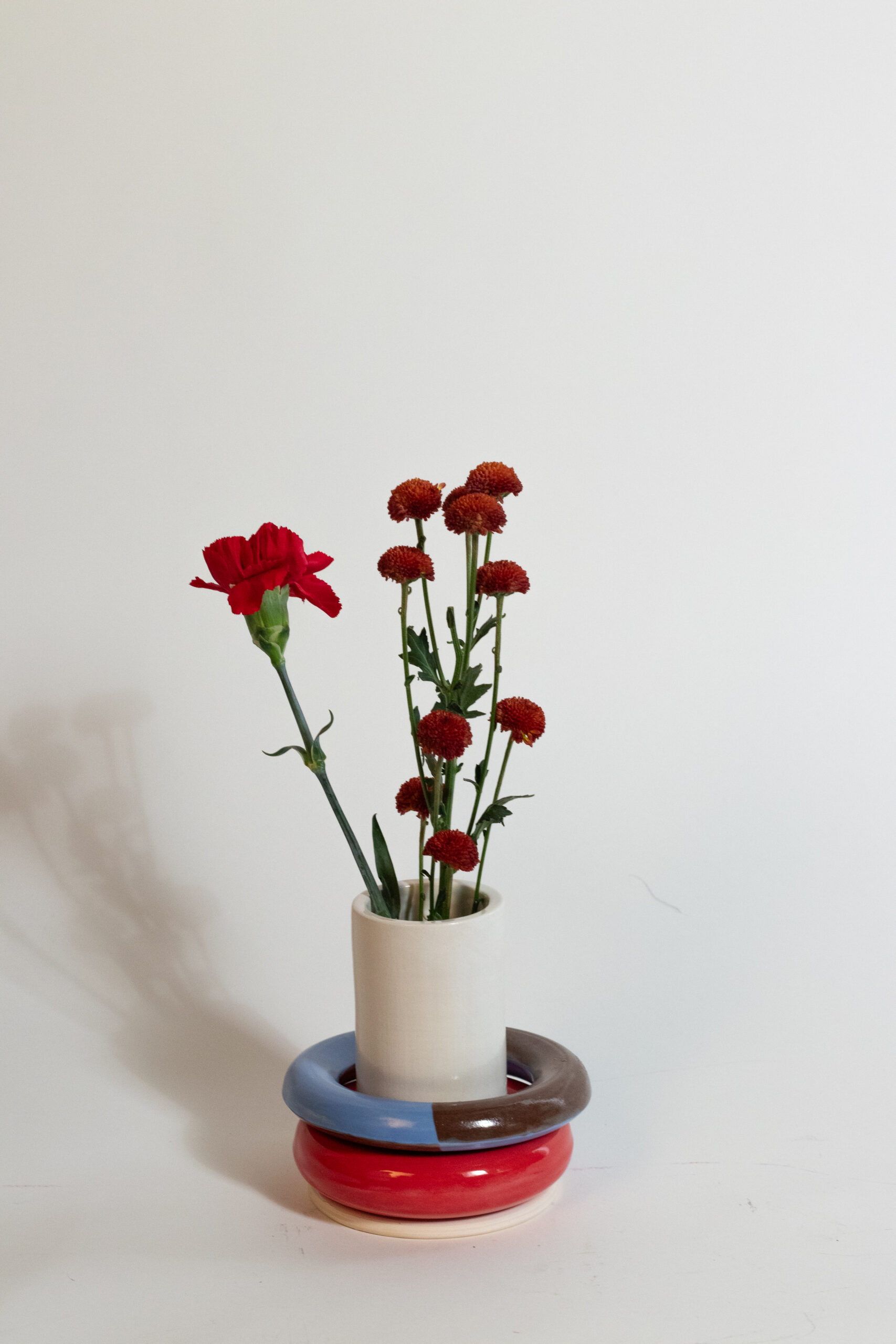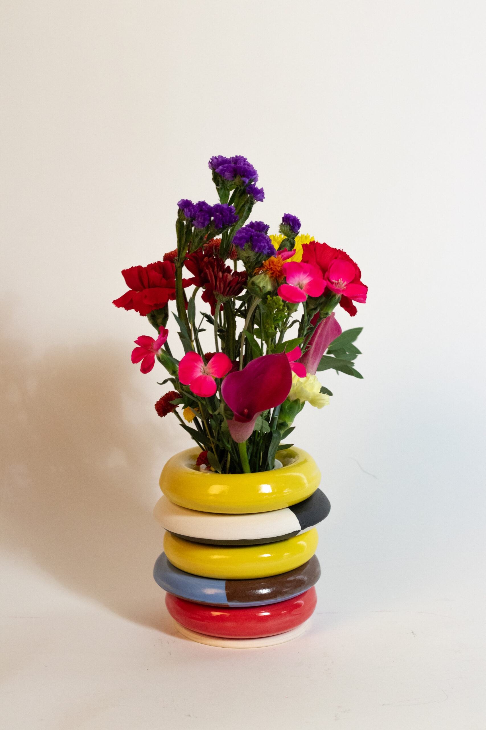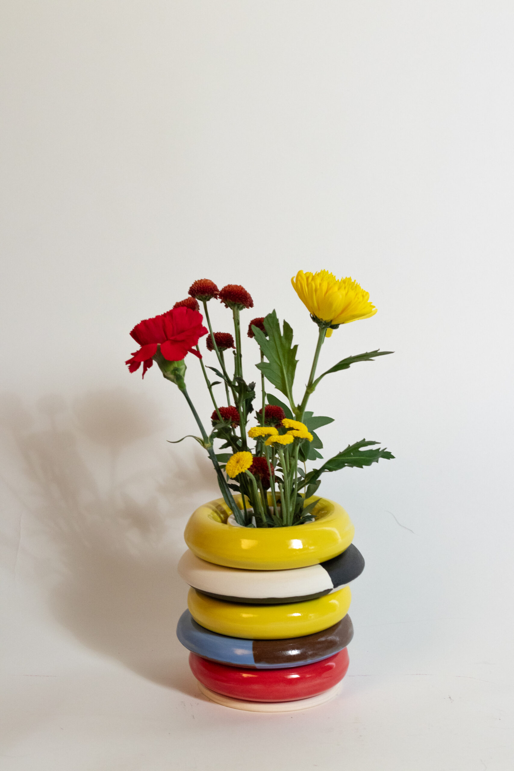 Ring vase is a call back to our earlier years. Where we sat on the floor content to play with bright colored plastic and practiced our fine motor skills. These vases are designed to mimic that while giving you the ability to individualize and manipulate your own aesthetic changing the shape, color, and vibe of your vase on a whim.
