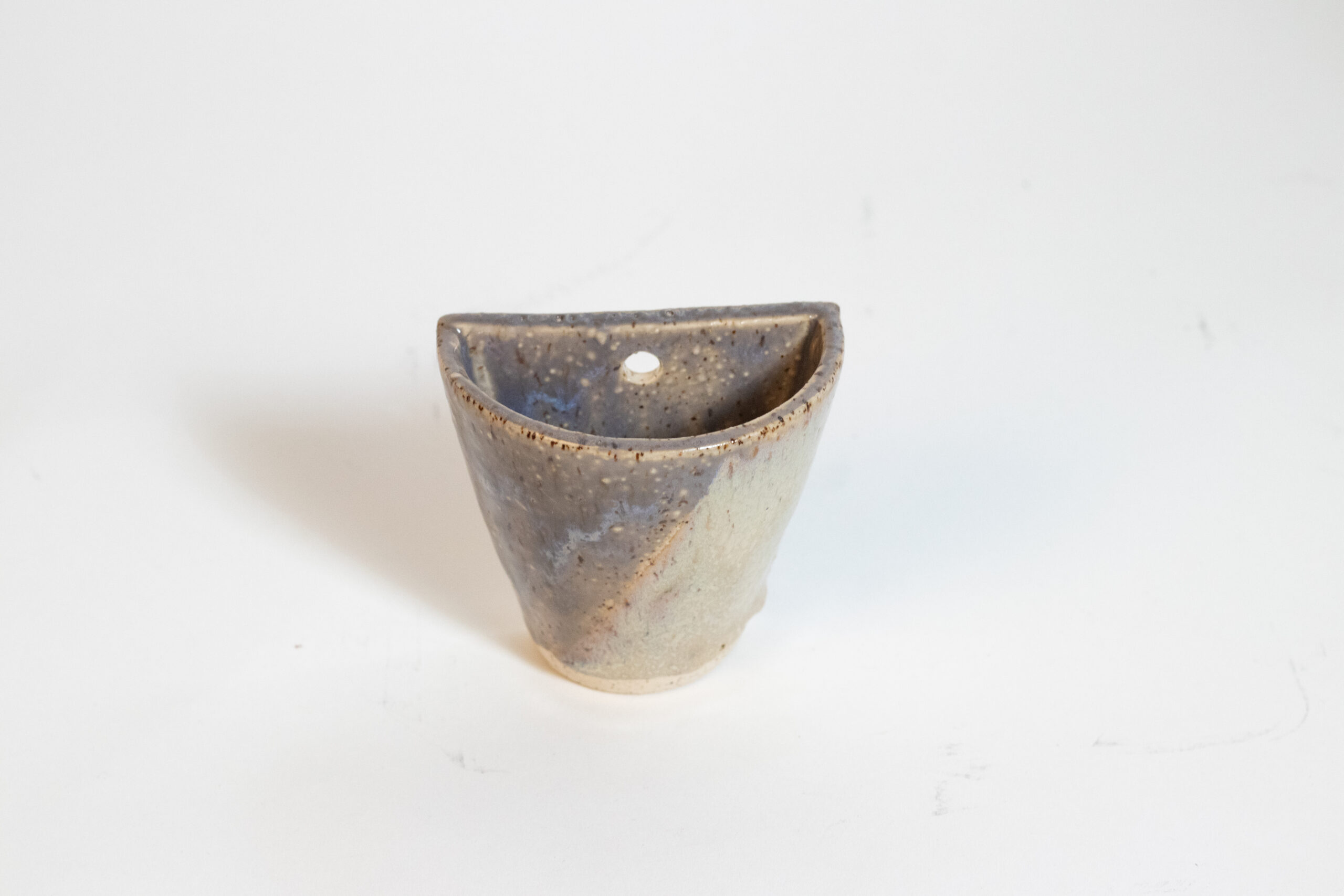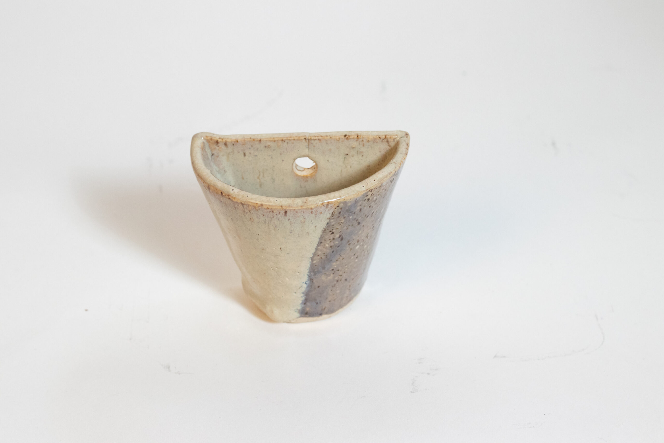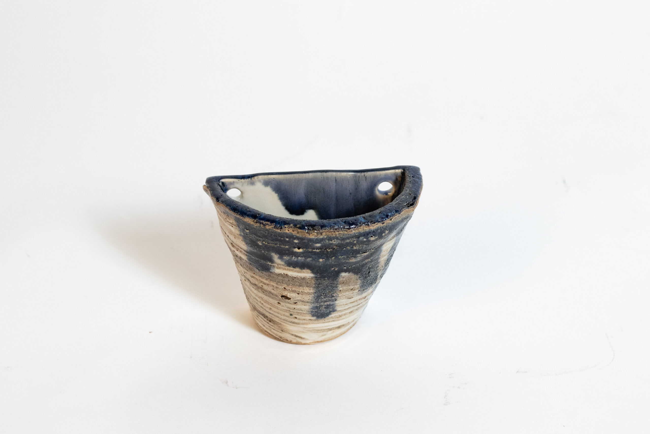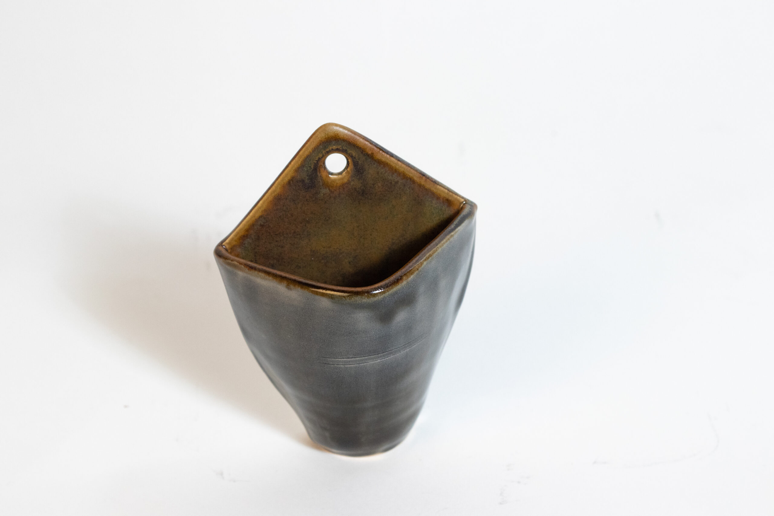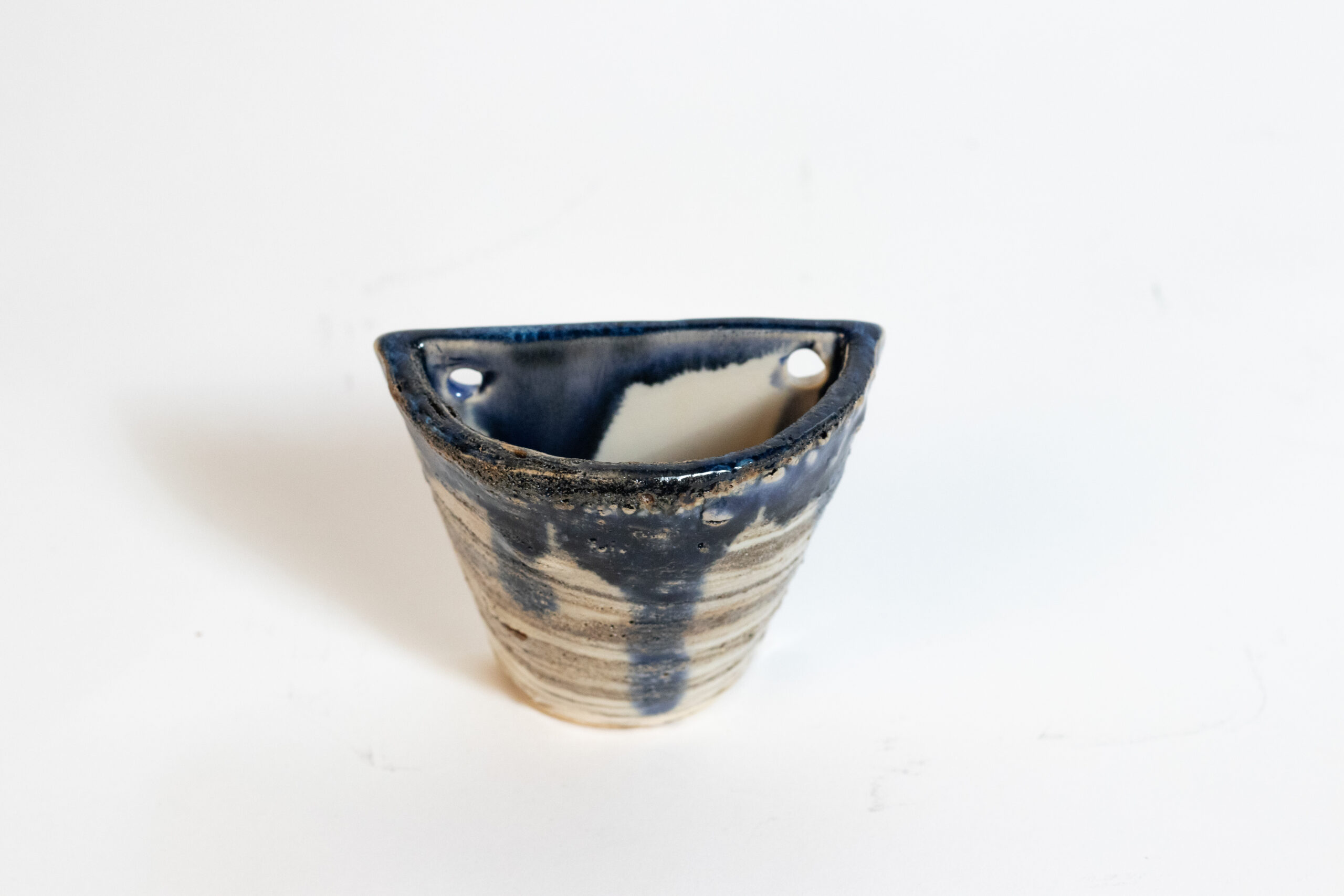 A hand thrown multi-use ceramic wall organizer, fit for holding art supplies, knick knacks, and even plants.