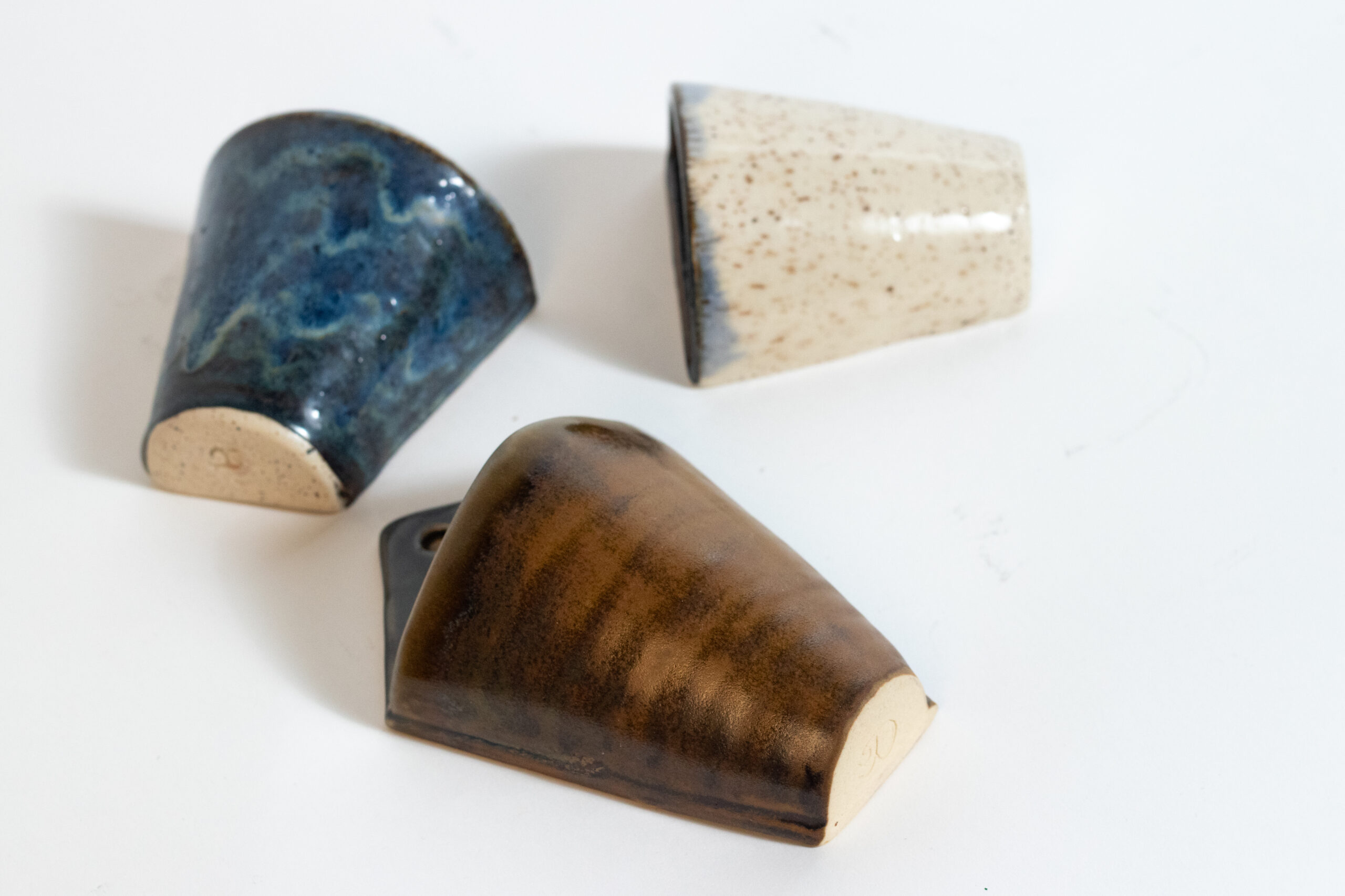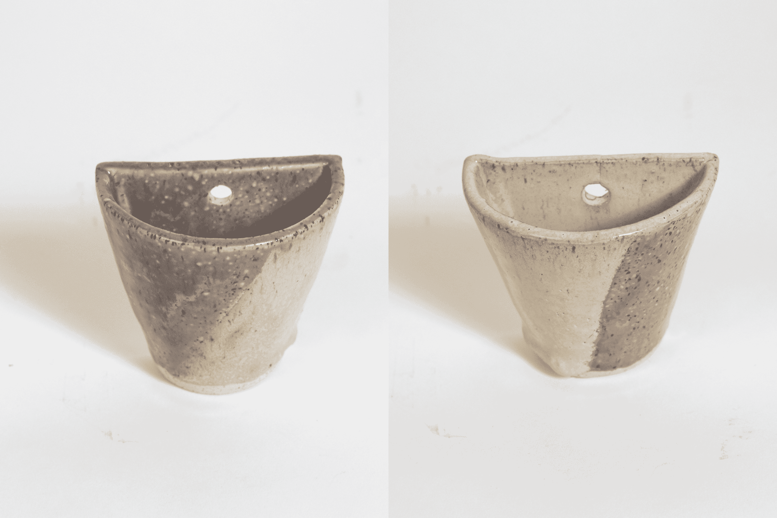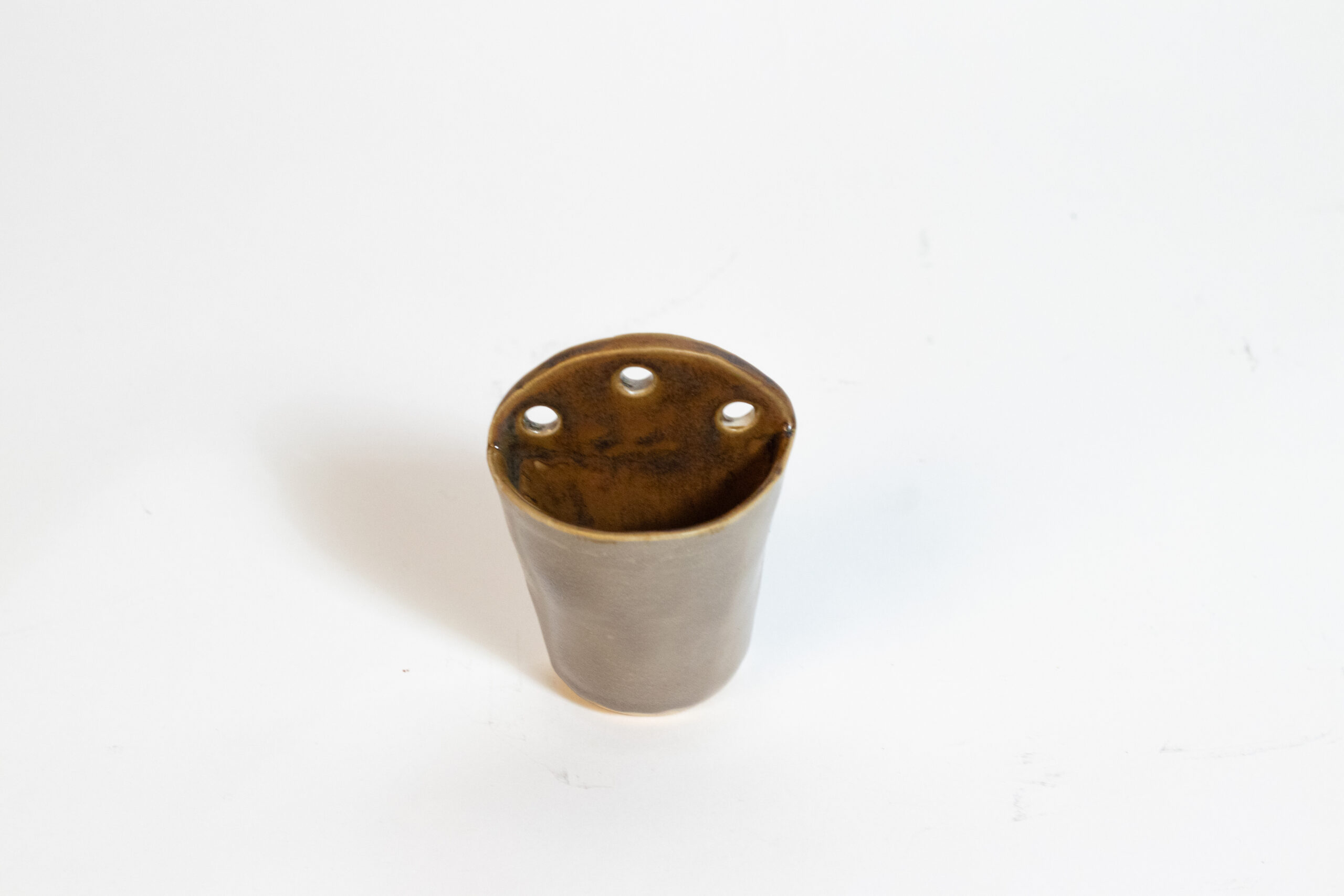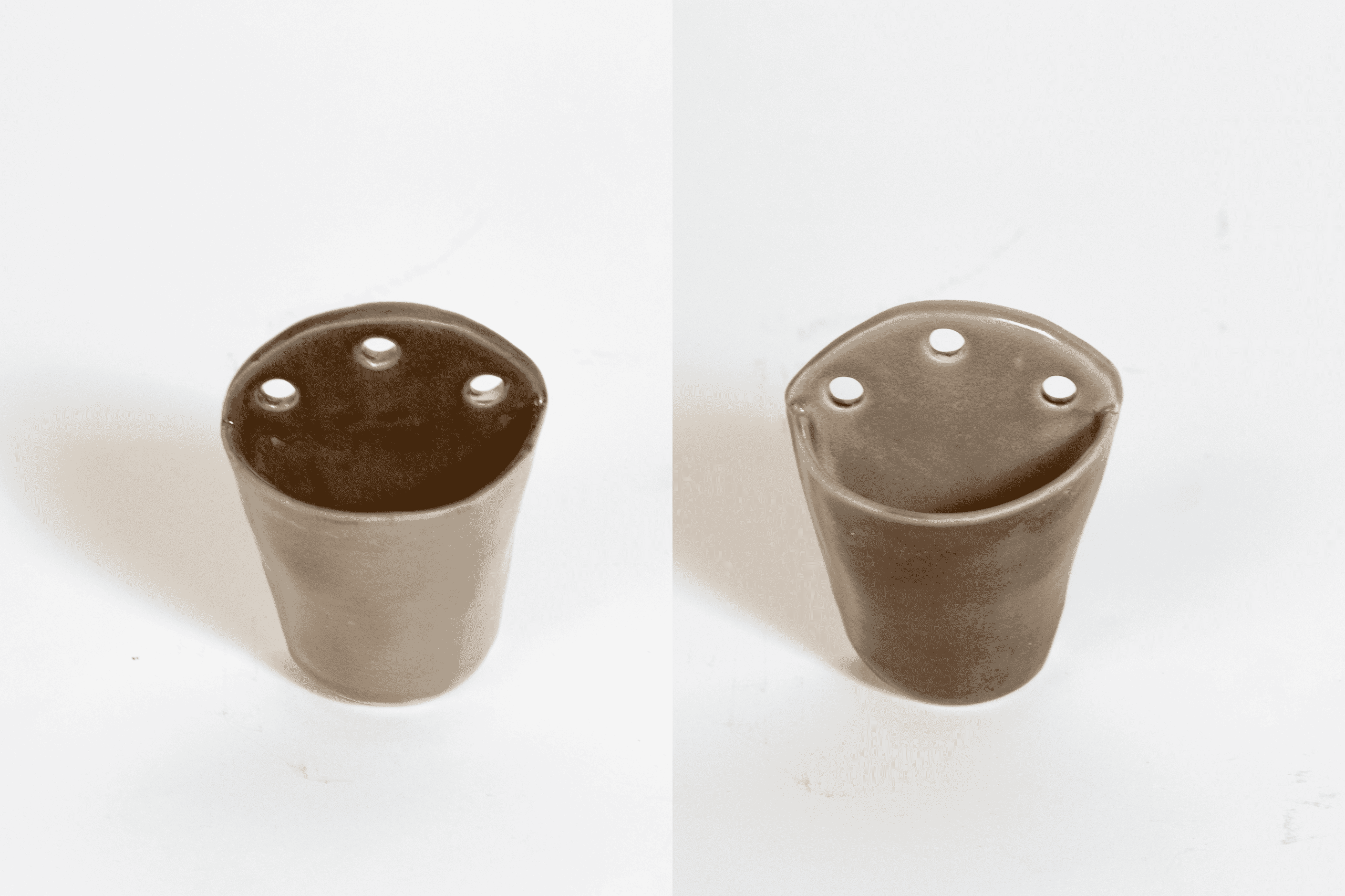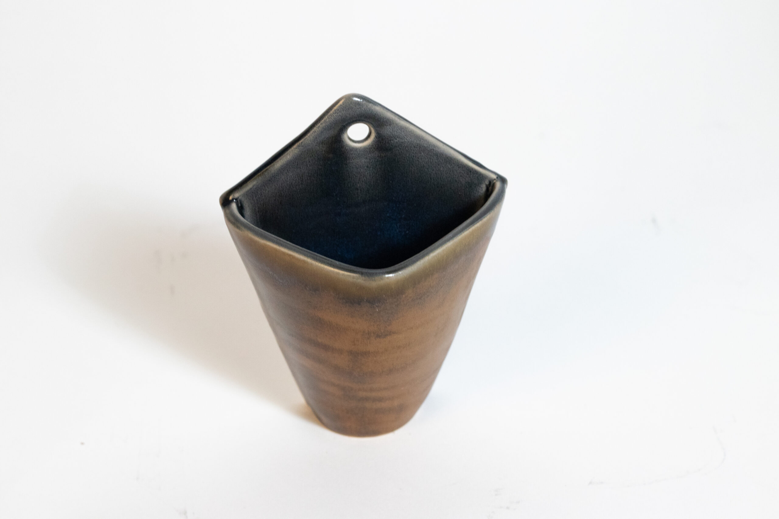 A hand thrown multi-use ceramic wall organizer, fit for holding art supplies, knick knacks, and even plants.